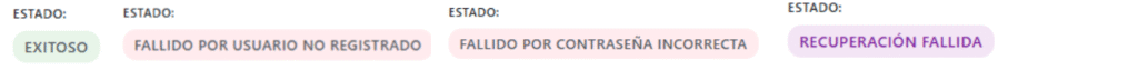 la primer sección de información son los registros de interacciones con el portal de entrada para los usuarios del panel de admin que hacen saber no solo datos de personas que iniciaron sesion si no los que los intentaron y fallaron, los que entraron al inicio de sesión (ya sea interactúen o no) y los que intentaron recuperar la contraseña de algun usuario. haciendo que quede cada registro por cualquier interaccion.
