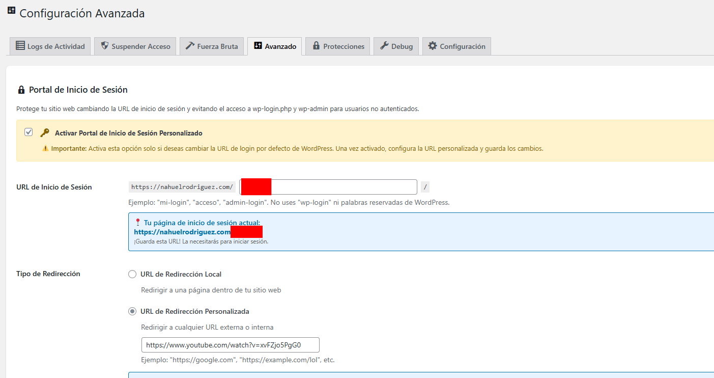 - Cambiar URL de Inicio de Sesión al portal de admin